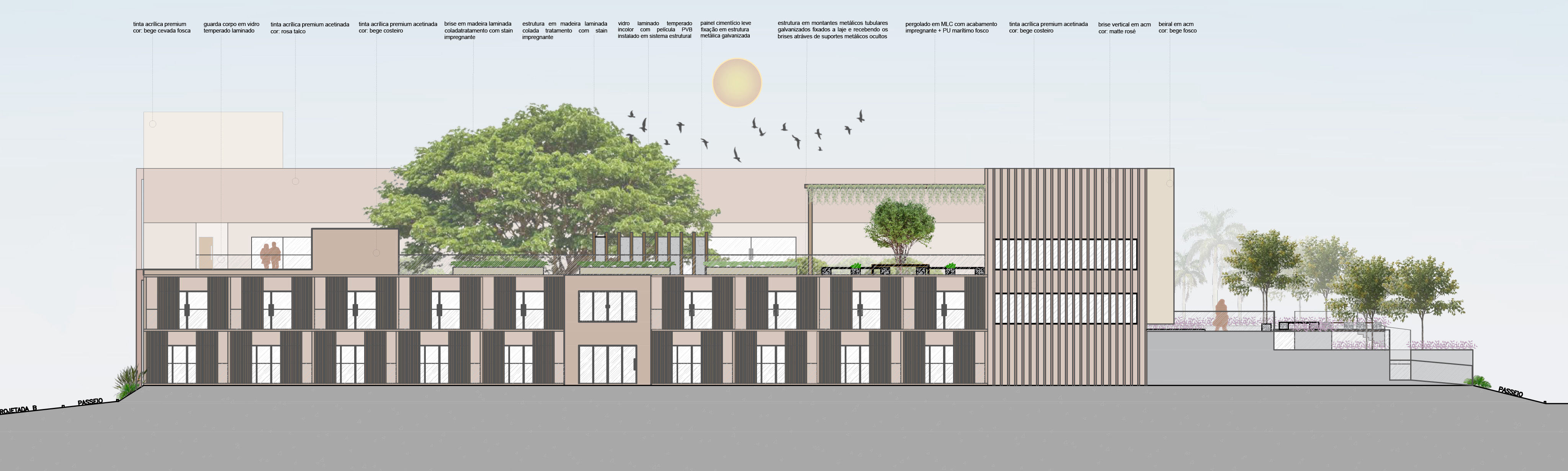 Na parte de projeto, você pode tirar todas suas dúvidas como: implantação, estrutura, materiais, sustentabilidade.